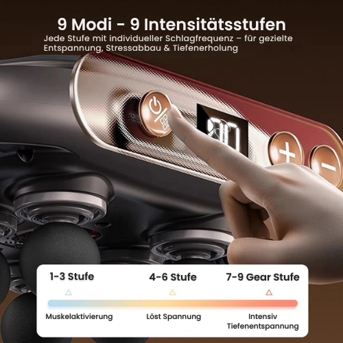 RelaxoPro ist dein tragbares Power-MassagegerĂ€t mit 6 rotierenden Massageköpfen, 9 einstellbaren IntensitĂ€tsstufen, tiefenwirksamer Rotlicht-Funktion und freihĂ€ndiger Anwendung â einfach hinsetzen, anlehnen, entspannen.