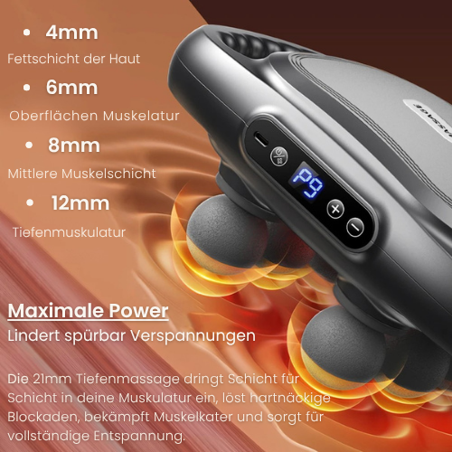 Tiefer & effektiver: Die 21âŻmm Massagetiefe erreicht selbst hartnĂ€ckige Muskelverspannungen.